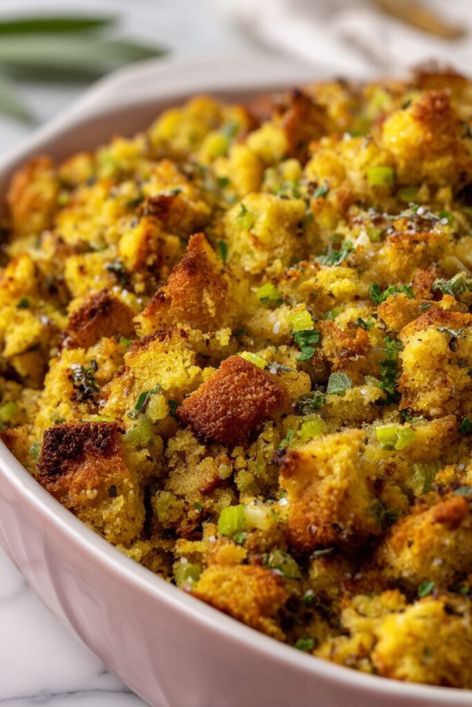 - Make-ahead friendly – You can prepare the cornbread base ahead of time and even assemble the stuffing the night before, making your holiday cooking much more manageable.