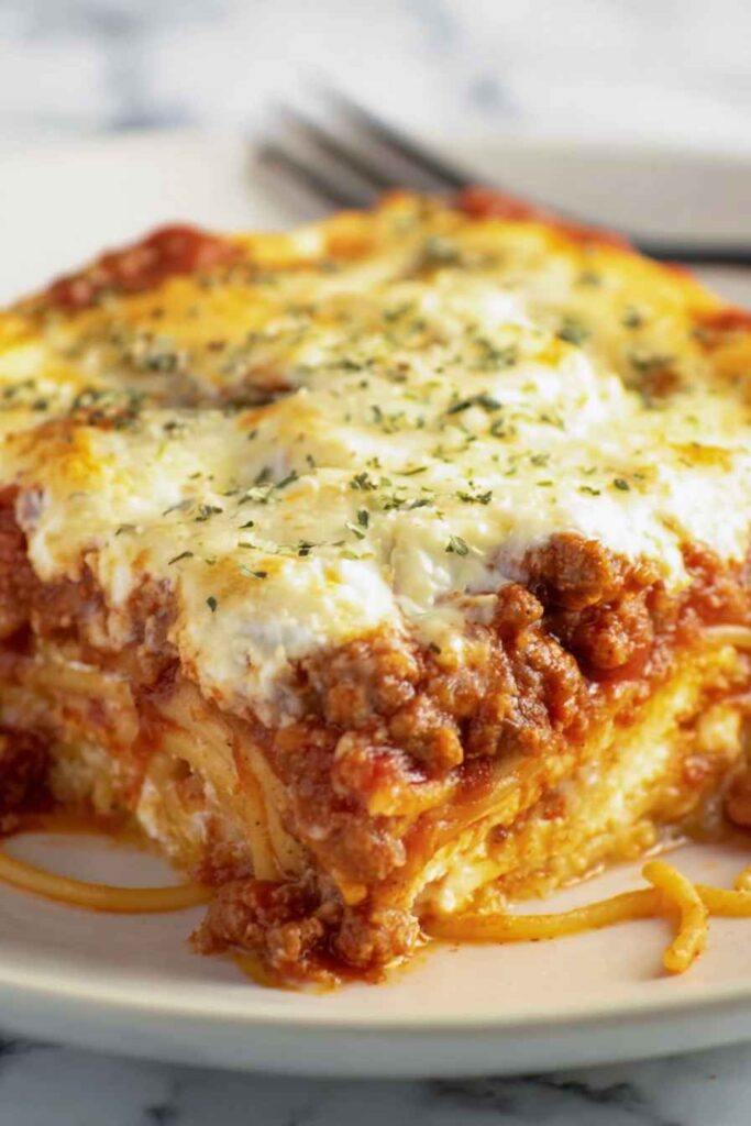 Refrigerate: This baked spaghetti is actually one of those dishes that tastes even better the next day! Store any leftovers covered in the fridge for up to 4 days. The flavors really meld together nicely overnight, making it perfect for easy weeknight dinners.