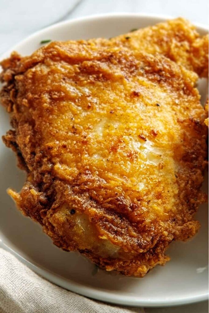 - Crispy, seasoned coating – The buttermilk marinade and well-spiced flour coating create that perfect golden crust that cracks when you bite into it.