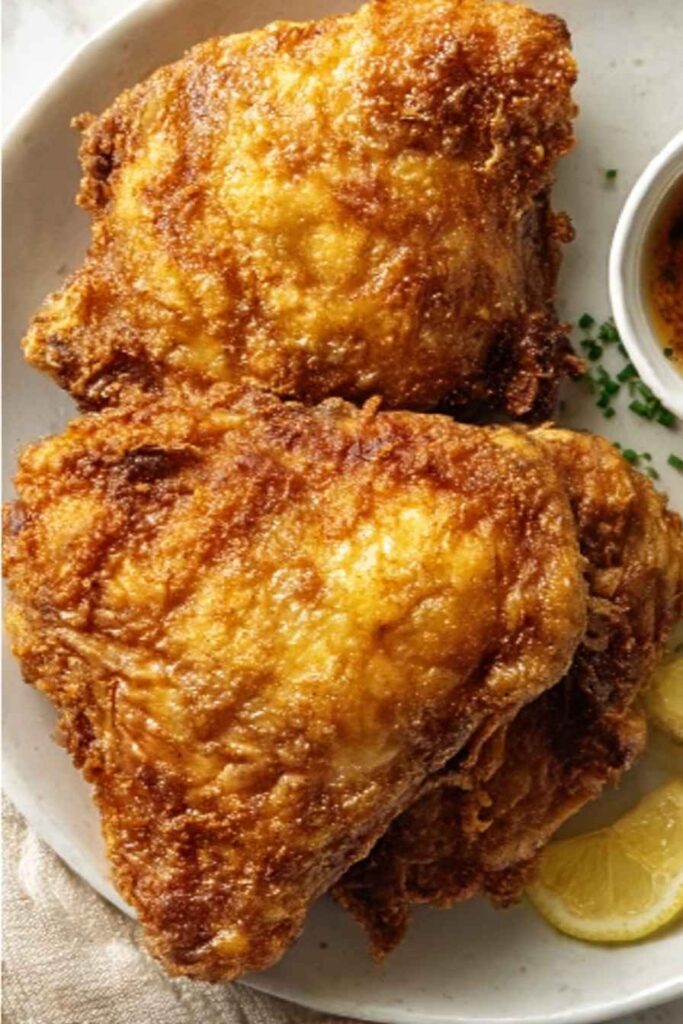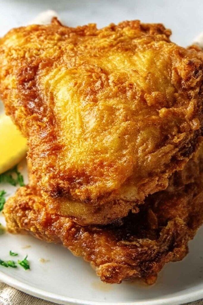 Fried chicken thighs are perfect with classic Southern sides like creamy mashed potatoes and gravy, coleslaw, and buttery biscuits that can soak up all those crispy, flavorful drippings. Mac and cheese is another crowd-pleaser that pairs beautifully with the crispy, seasoned coating on these thighs. For something a bit lighter, try serving them with a fresh cucumber salad or some honey-drizzled cornbread on the side. Don’t forget about green beans or corn on the cob if you want to add some veggies to round out the meal!