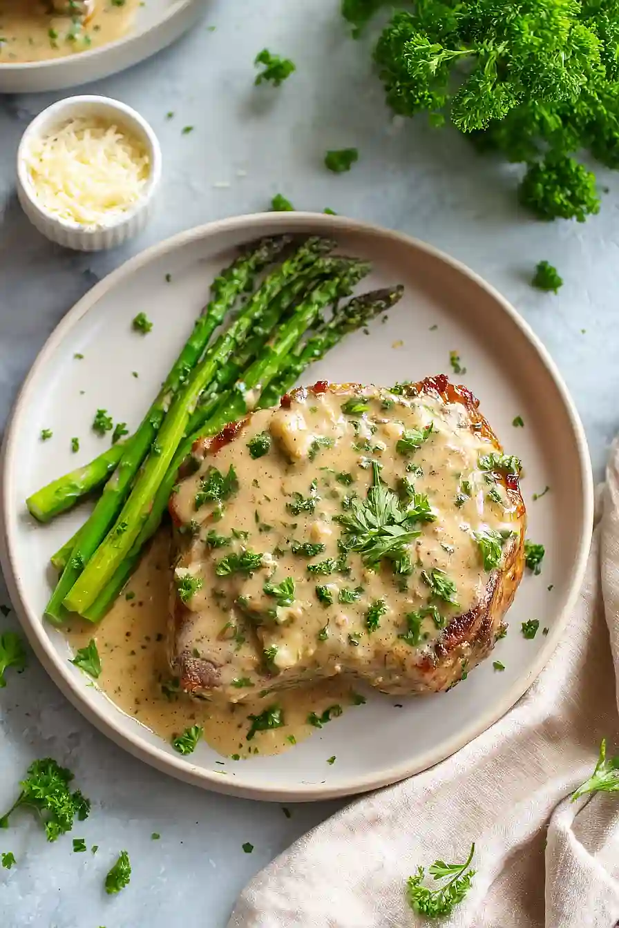 These creamy pork chops pair really well with simple low-carb sides that won’t compete with the rich sauce. I love serving them over cauliflower mash or cauliflower rice, which soaks up all that garlicky cream sauce perfectly. Roasted vegetables like Brussels sprouts, asparagus, or green beans make great options too, especially when they’re tossed with a little butter and salt. If you want something fresh to balance out the richness, a simple arugula salad with lemon vinaigrette does the trick nicely.