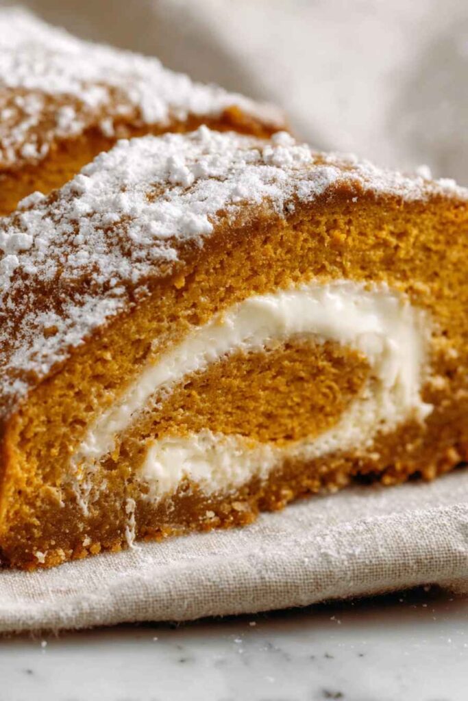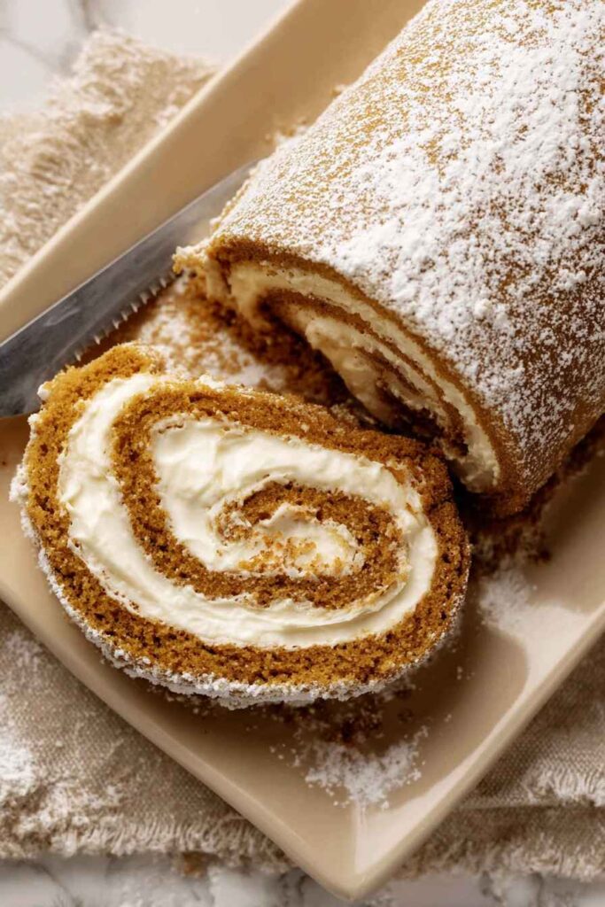 Refrigerate the finished pumpkin roll for at least 1 hour before slicing—this firms up the filling and makes clean slices much easier.