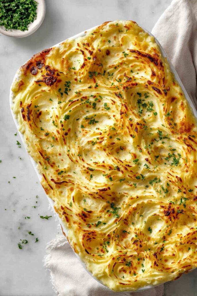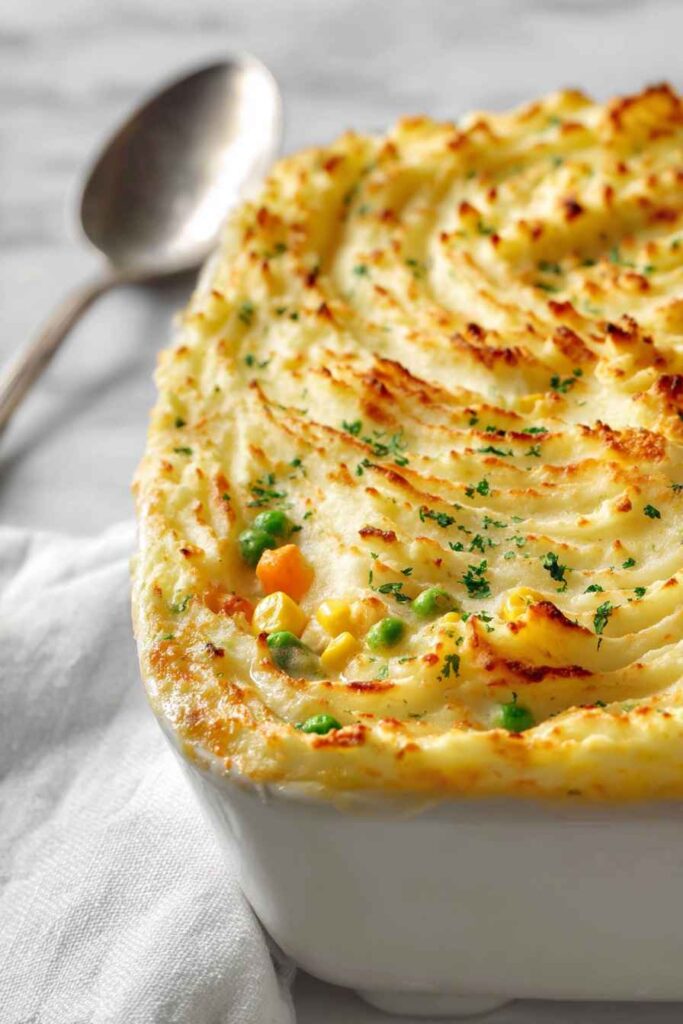 Don’t skip letting your filling cool for 10-15 minutes before topping with mashed potatoes, as hot filling can cause the potatoes to melt and create a messy layer instead of a nice golden top.
