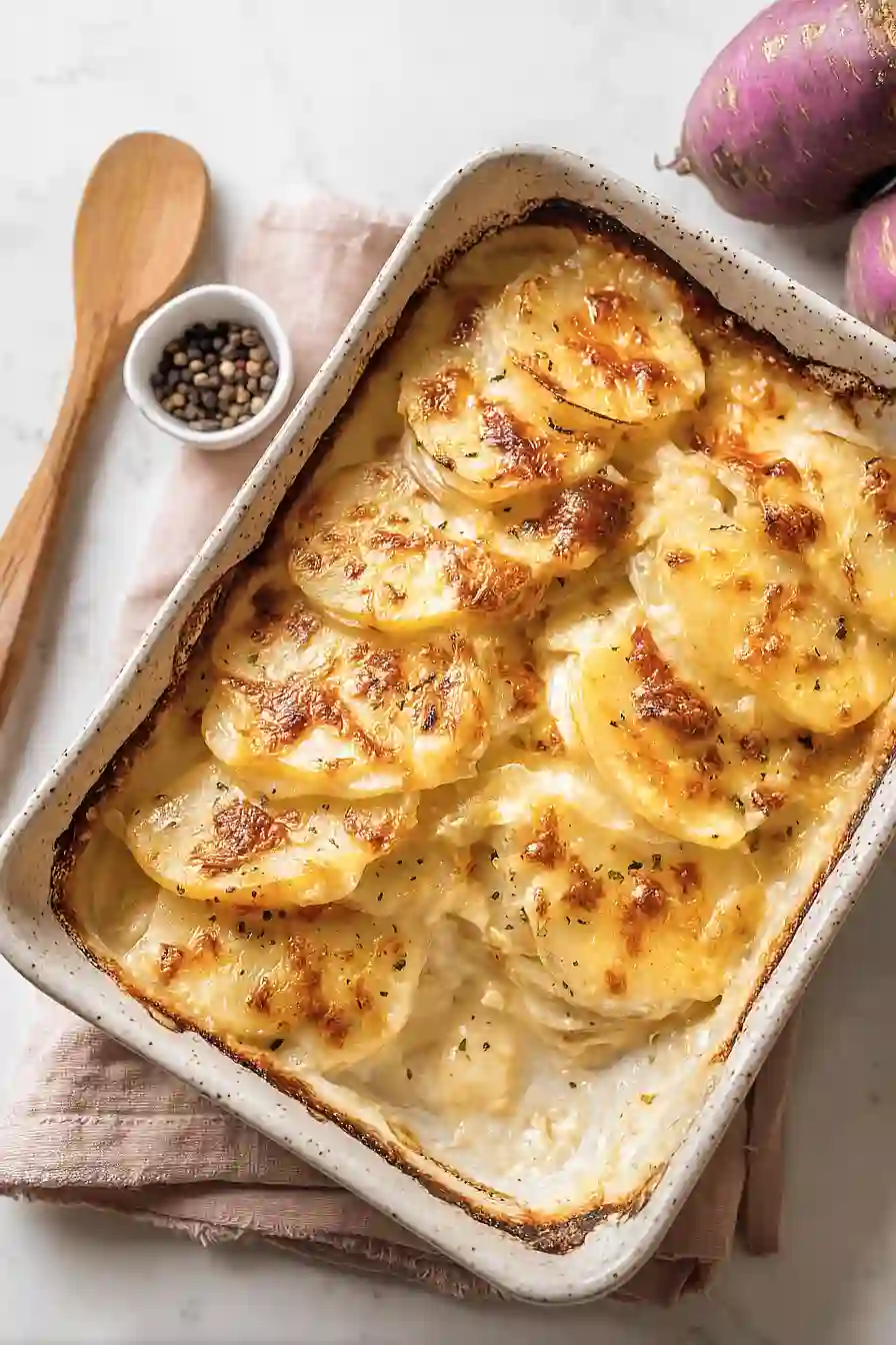 But here’s the thing: rutabaga changes everything. I know, I know—it sounds like a weird vegetable your grandma might have eaten during the Depression. But when you slice it thin and bake it in a creamy, cheesy sauce, it tastes pretty close to the real deal. My kids didn’t even notice I’d swapped it in until I told them, and by then they’d already gone back for seconds.