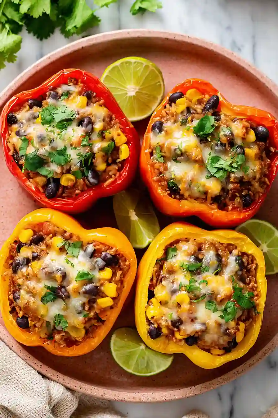 These stuffed peppers are pretty filling on their own, but I love serving them with a simple side of sour cream and extra salsa for topping. A fresh Mexican street corn salad (esquites) makes a great companion – just toss some grilled corn with lime juice, mayo, and cotija cheese. If you want something lighter, go with a crisp romaine salad dressed with lime and a sprinkle of tajín seasoning. Warm tortilla chips with guacamole on the side also work well if you’re feeding a crowd and want to stretch the meal a bit further.