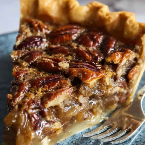 This pecan pie is always a hit at our Thanksgiving table and potluck dinners. I love making it because it’s surprisingly simple, but everyone thinks you spent hours in the kitchen. Plus, it tastes even better the next day if you can resist eating it all in one sitting!