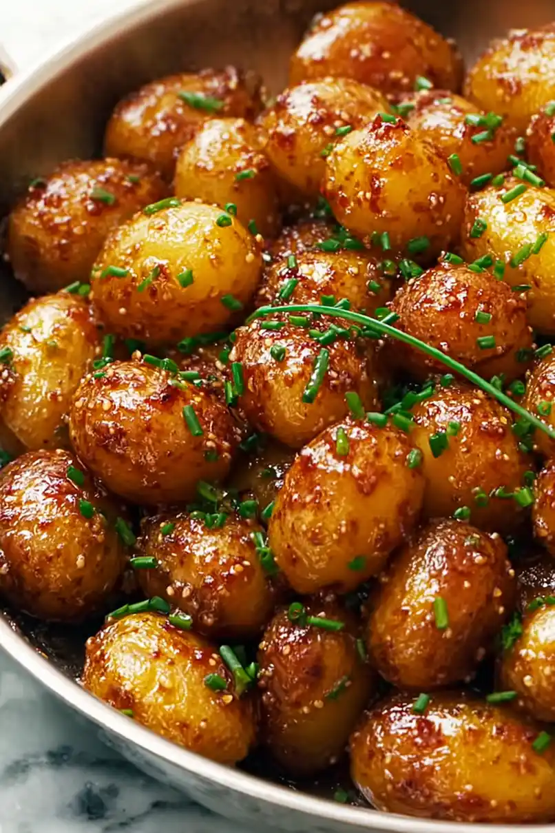 Transfer the glazed potatoes to a serving platter or individual bowls.