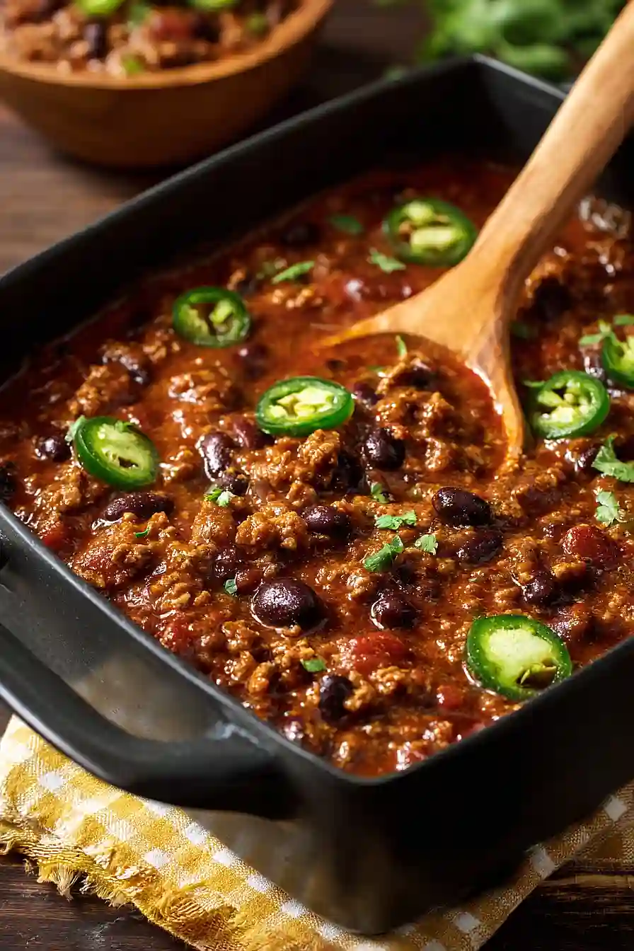 - Ladle the chili into bowls and serve immediately with sliced avocado, fresh jalapeno slices, and lime wedges on the side. The bright, creamy avocado and acidic lime juice complement the rich, spiced chili beautifully.