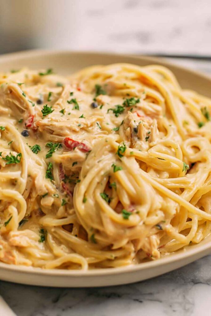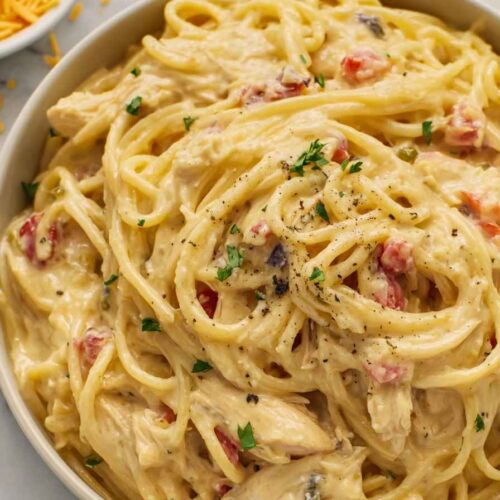 Refrigerate: This chicken spaghetti keeps really well in the fridge for up to 4 days in a covered container. I actually think it tastes even better the next day because all those flavors have time to meld together. Just make sure to let it cool completely before putting it away.